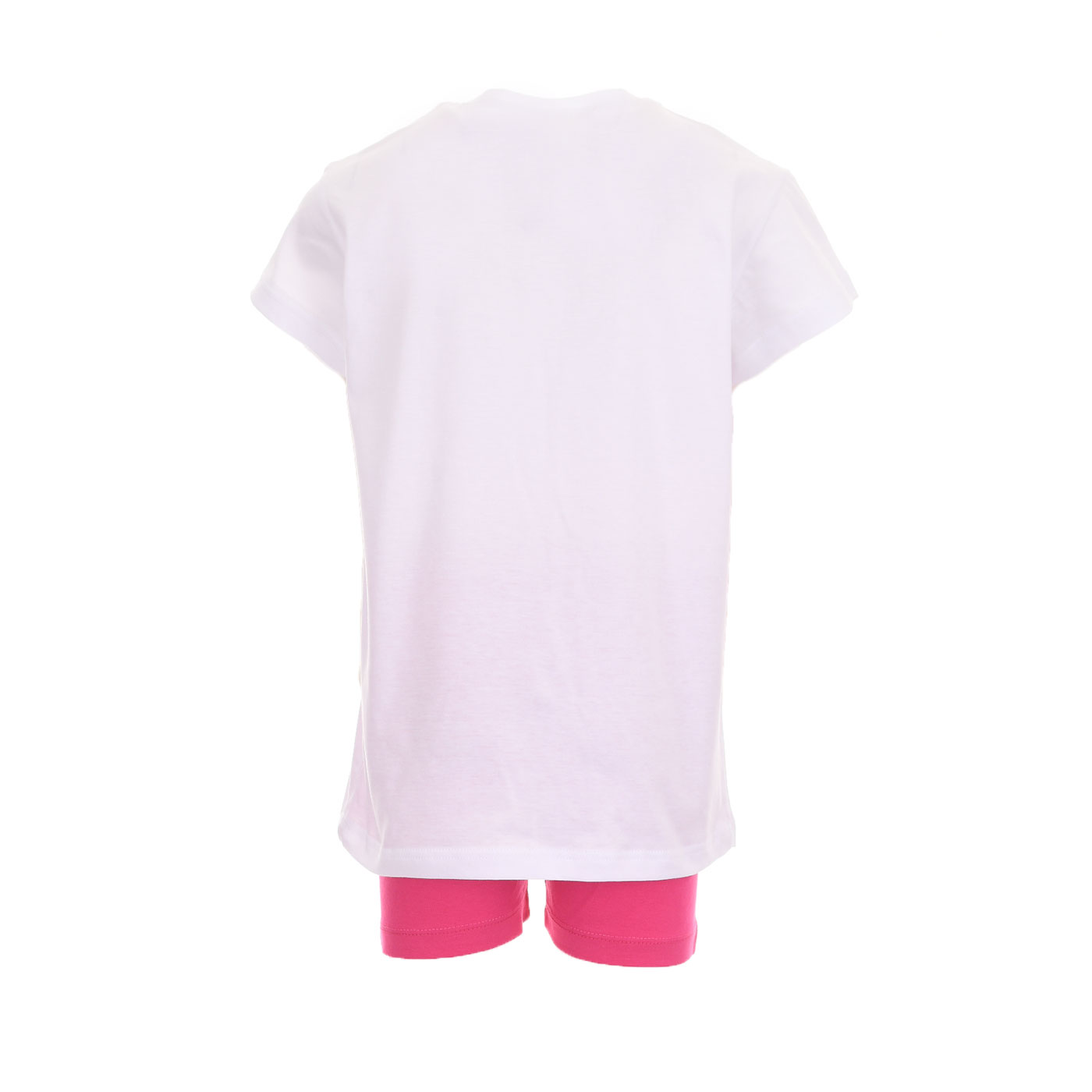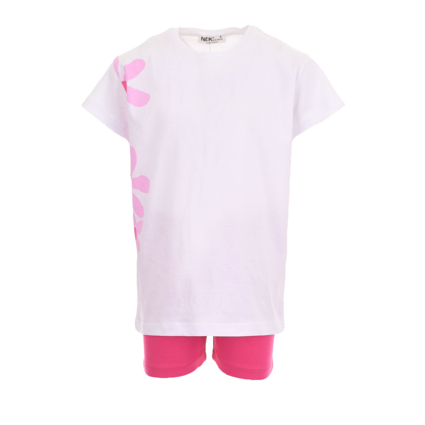 Αναδείξτε την απλότητα και το καλοκαιρινό στυλ με αυτό το κομψό παιδικό σετ με σορτς για κορίτσια από τη Nekidswear σε διαχρονικό συνδυασμό λευκού και φουξ.