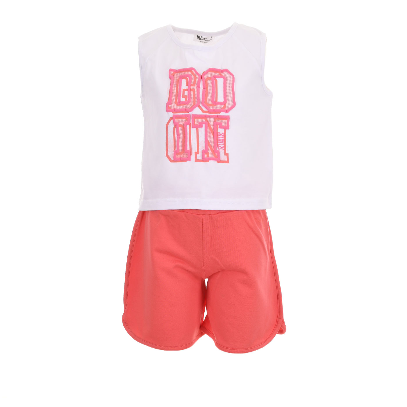 Δώστε ζωντάνια και sporty διάθεση στις εμφανίσεις της μικρής σας με αυτό το μοντέρνο παιδικό σετ με σορτς για κορίτσια από τη Nekidswear σε φωτεινό συνδυασμό λευκού και κοραλί. Ένα outfit ιδανικό για καθημερινή άνεση με στυλ.
