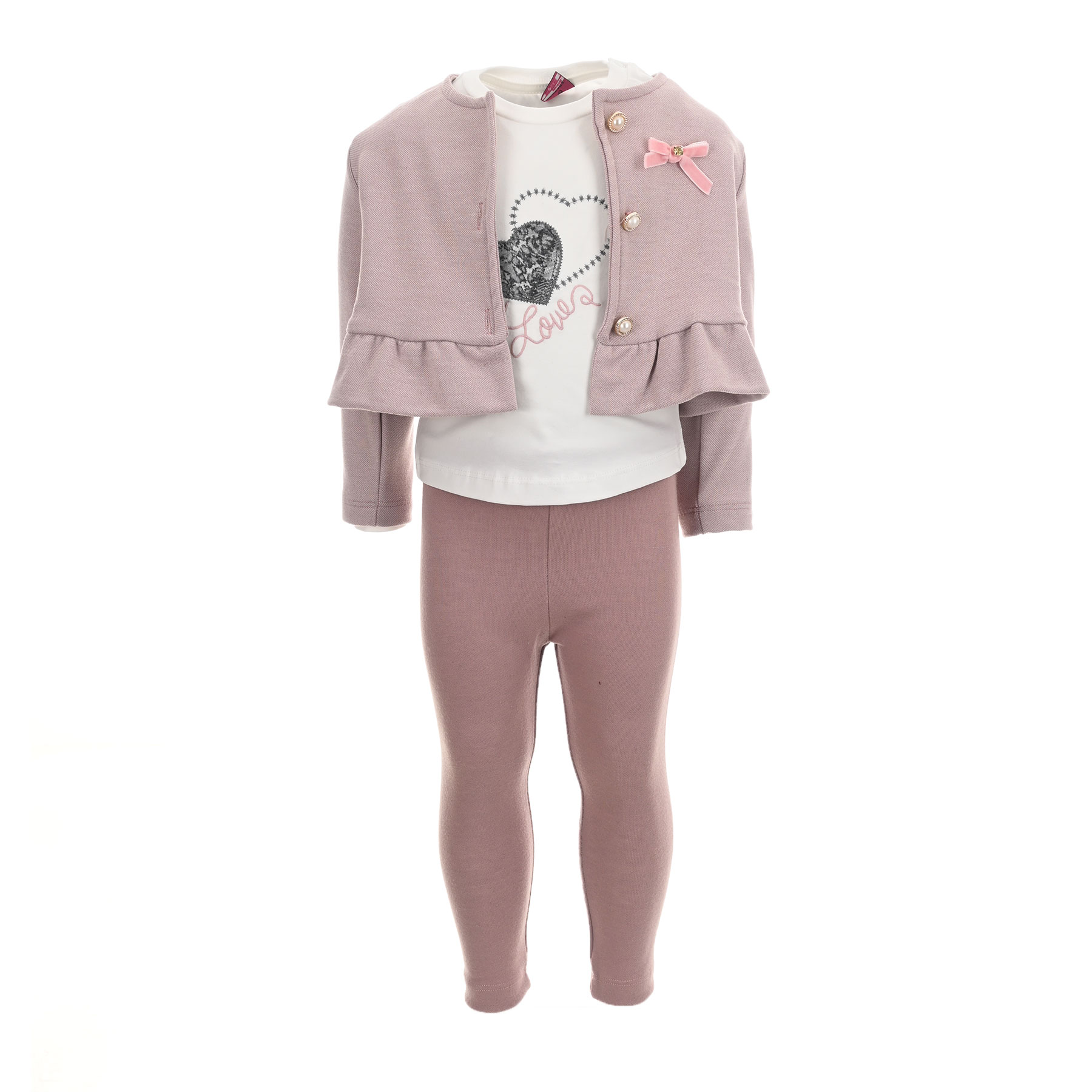 Παιδικά ρούχα Restart. Παιδικό σετ για κορίτσια Restart. Παιδικό σετ με ζακέτα για κορίτσια Restart 3τμχ σάπιο μήλο-λευκό