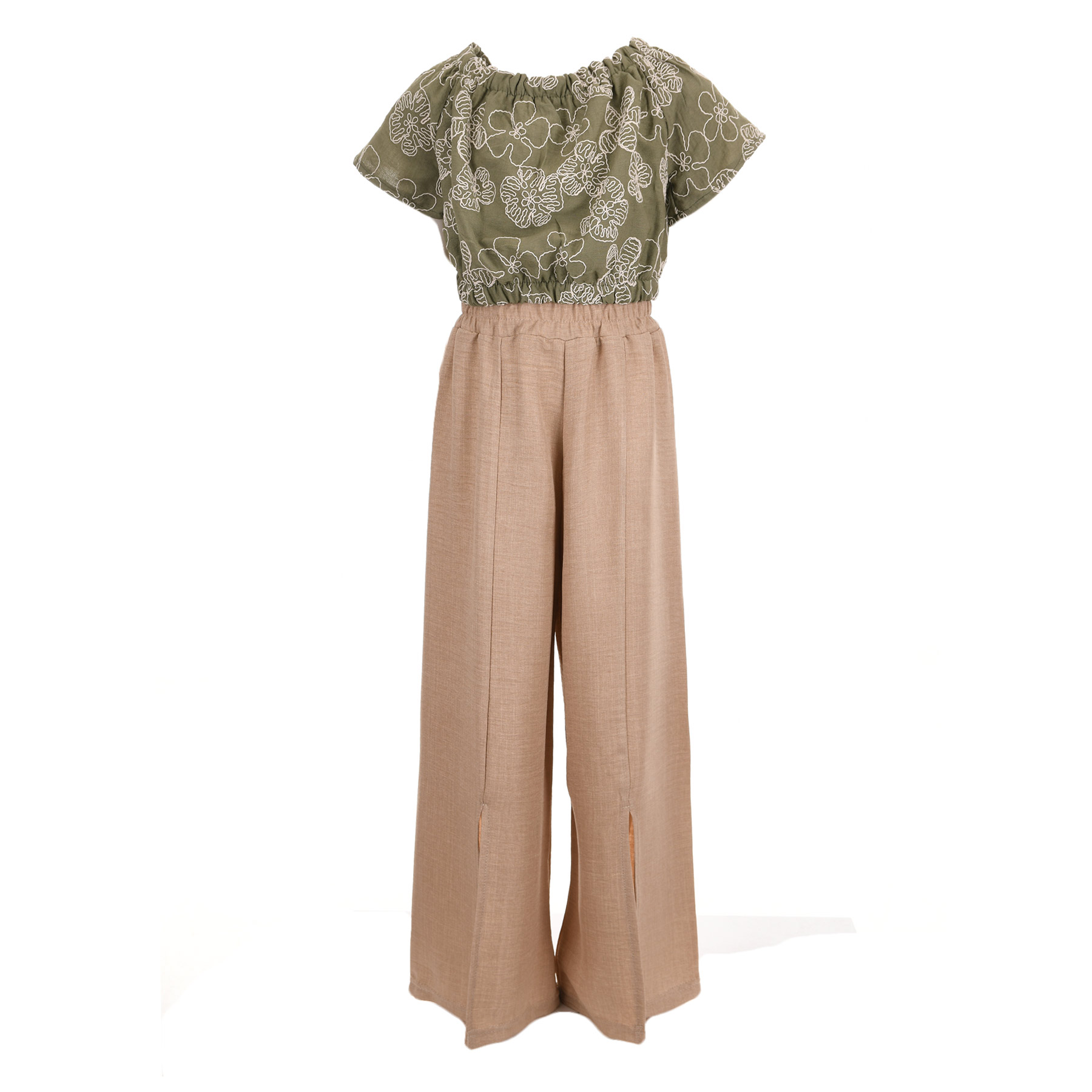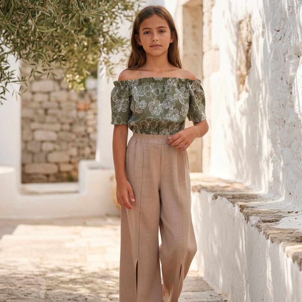 Το παιδικό σετ με παντελόνα για κορίτσια Can Kids σε λαδί-μπεζ αποχρώσεις συνδυάζει φυσική κομψότητα και μοντέρνο στυλ, αποτελώντας ιδανική επιλογή για ξεχωριστές καλοκαιρινές εμφανίσεις. Ο αρμονικός συνδυασμός του λαδί με το μπεζ δημιουργεί ένα elegant και διαχρονικό outfit.