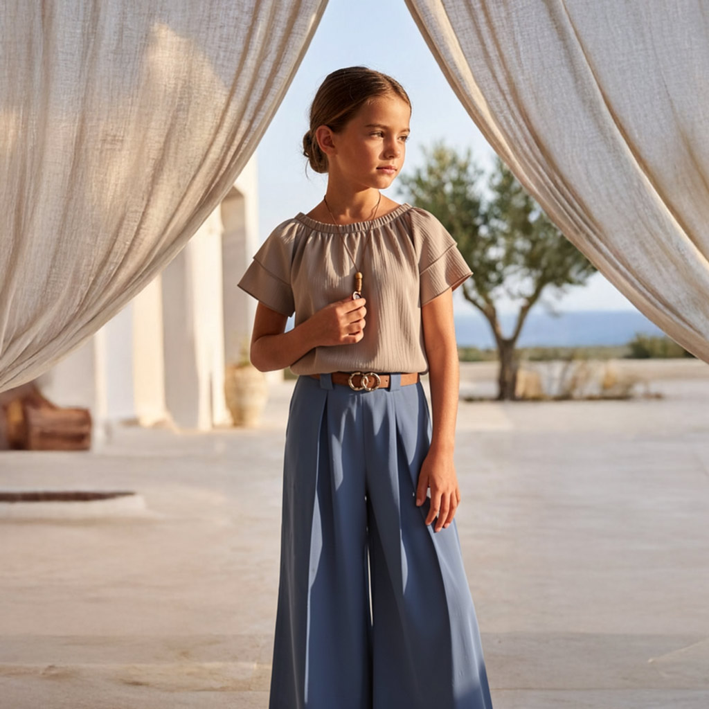 Ένα κομψό παιδικό σύνολο που ξεχωρίζει για τη μοντέρνα αισθητική, την άνετη εφαρμογή και την προσεγμένη λεπτομέρεια, ιδανικό για κορίτσια που αγαπούν το στυλ.