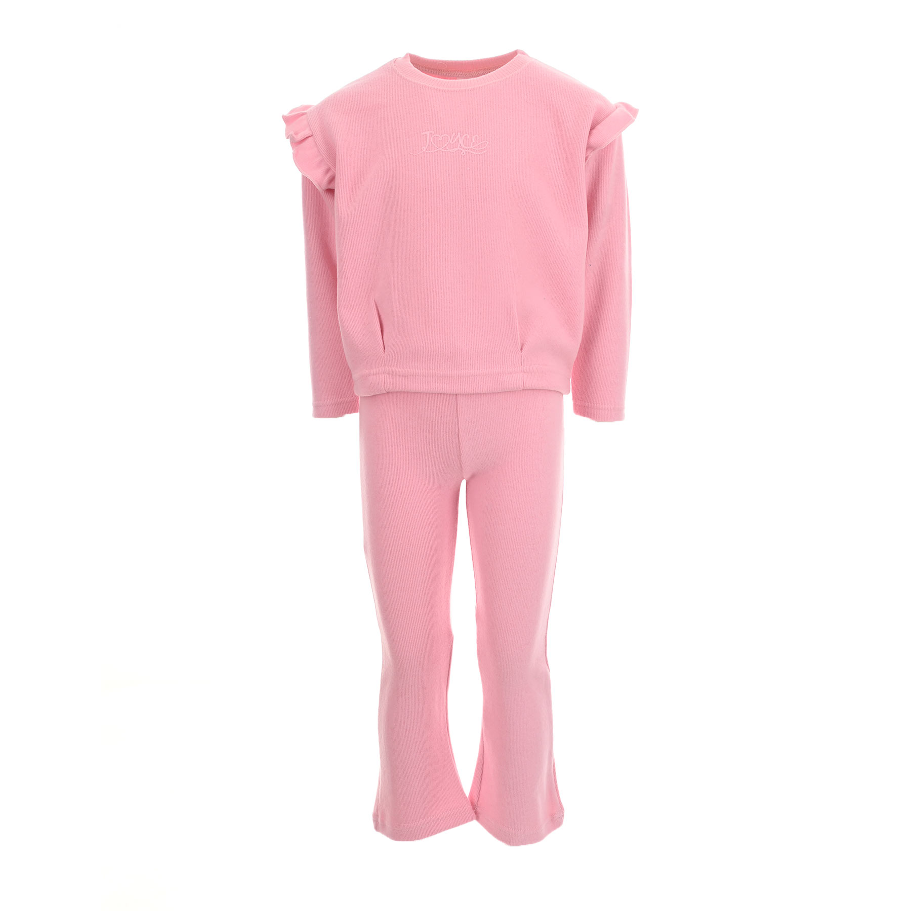Χαρίστε στυλ και άνεση στην καθημερινότητα της μικρής σας με αυτό το υπέροχο παιδικό σετ ριπ Joyce για κορίτσια σε ροζ απόχρωση. Το σετ περιλαμβάνει μπλούζα με μακριά μανίκια και ιδιαίτερα βολάν στους ώμους, που προσθέτουν μια κοριτσίστικη και ρομαντική πινελιά, καθώς και παντελόνι τύπου κολάν με ελαφριά καμπάνα στο τελείωμα για μοντέρνο look.