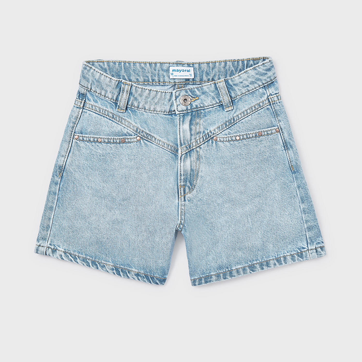 Απαραίτητο κομμάτι για τις καλοκαιρινές εμφανίσεις, αυτό το παιδικό τζιν σορτς Mayoral σε ανοιχτό μπλε χρώμα συνδυάζει άνεση, ανθεκτικότητα και σύγχρονο design. Κατασκευασμένο από ποιοτικό denim, προσφέρει ευχάριστη εφαρμογή και ελευθερία κινήσεων, ιδανική για καθημερινή χρήση.Διαθέτει κλασικό κλείσιμο με κουμπί και φερμουάρ, θηλιές για ζώνη και λειτουργικές τσέπες μπροστά και πίσω. Οι διακριτικές μεταλλικές λεπτομέρειες στις τσέπες προσθέτουν στιλάτη πινελιά, ενώ η καθαρή γραμμή του το καθιστά εύκολο στο συνδυασμό με μπλούζες, τοπ ή πουκάμισα.