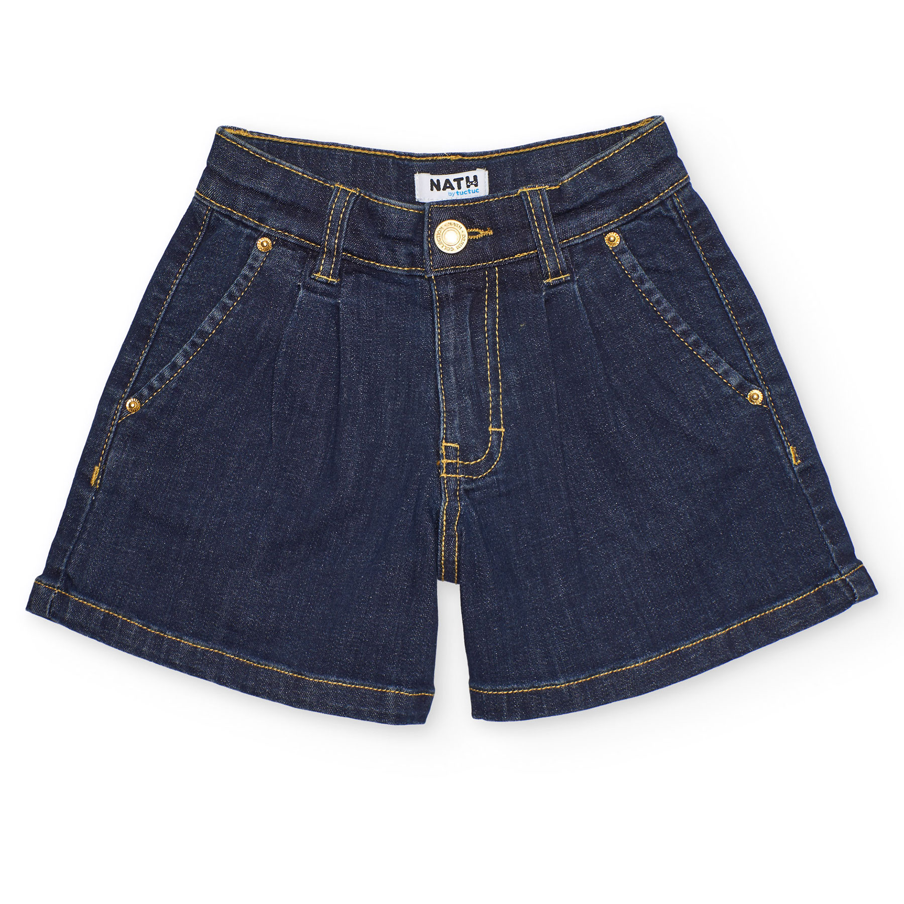 Το παιδικό σόρτς για κορίτσια Nathkids σε σκούρο μπλε τζιν αποτελεί μια διαχρονική και πρακτική επιλογή για τις καθημερινές καλοκαιρινές εμφανίσεις. Με ψηλόμεση εφαρμογή και ελαφρώς φαρδιά γραμμή, προσφέρει άνεση και ελευθερία κινήσεων, ενώ το ποιοτικό denim ύφασμα εξασφαλίζει ανθεκτικότητα και σταθερή εφαρμογή. Διαθέτει λειτουργικές τσέπες μπροστά, διακοσμητικές μεταλλικές λεπτομέρειες και κουμπί στο κλείσιμο, στοιχεία που αναδεικνύουν τον κλασικό τζιν χαρακτήρα του. Το σκούρο μπλε χρώμα το καθιστά ευκολοσυνδύαστο με μπλούζες, πουκάμισα ή τοπ, δημιουργώντας casual αλλά και πιο προσεγμένα σύνολα για το σχολείο, τις βόλτες ή τις διακοπές. Ένα απαραίτητο κομμάτι για κάθε παιδική γκαρνταρόμπα που συνδυάζει στυλ, άνεση και διαχρονική αισθητική.