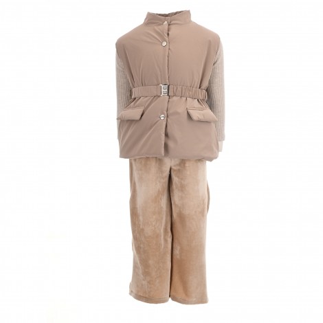 Παιδικό σετ με παντελόνα βελουτέ & αμάνικο για κορίτσια 3τμχ Restart μπεζ